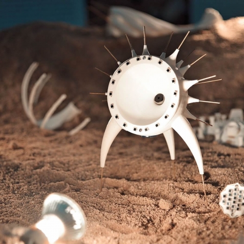 Em busca de entender os primórdios da consciência biológica o artista usa poesia e semiótica para apresentar pequenos robôs antropomórficos e autômatos que percebem o ambiente através dos seus sensores e responde o mundo concreto com movimentos e sons.